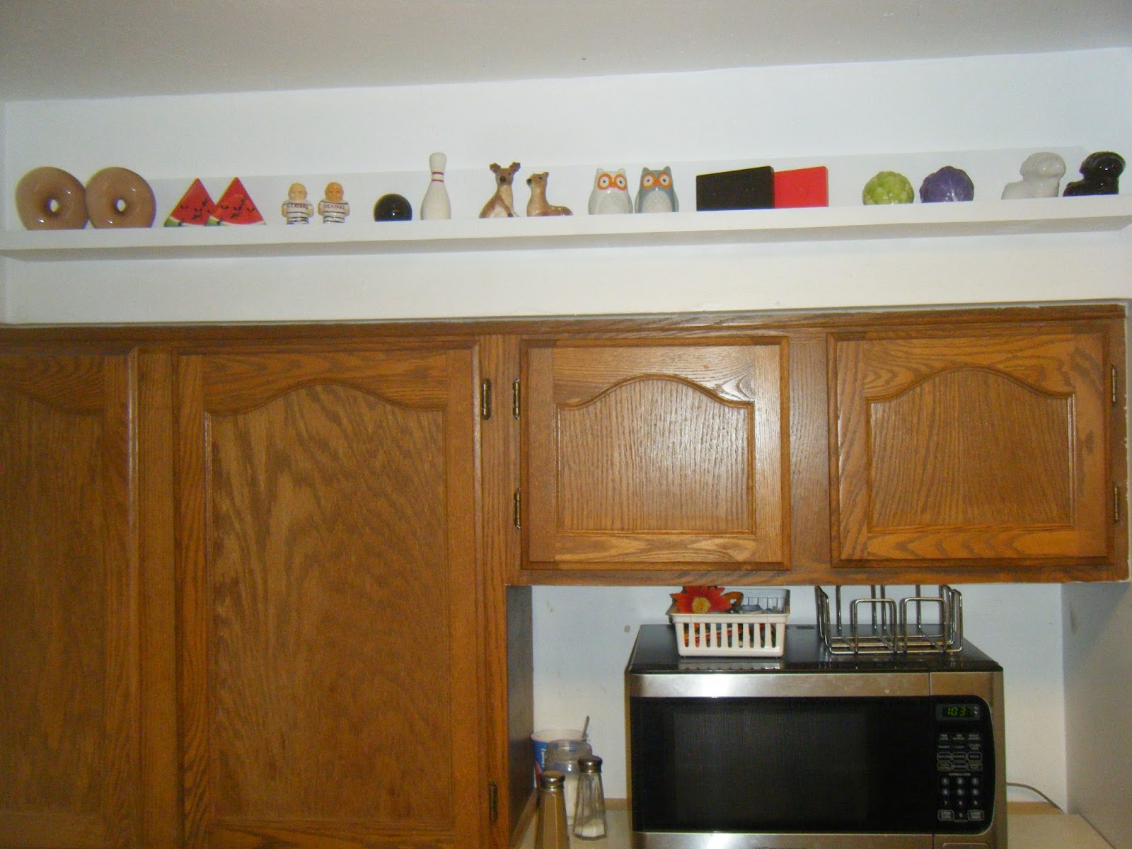 My dad made me salt and pepper shelves!!!! I was concerned if I should put them up or if it would be "too much". Turns out...I LOVE IT and he is making me another one for the other wall. I love having them out finally! Thanks dad!